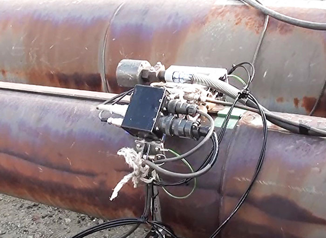 検出対象を比較的面積のある外面腐食(Ф50mm以上)に限定する事により、高速化を図ります。従来の検査速度は平均60m/日ですが、本システムの目標検査速度は100m/日以上です。