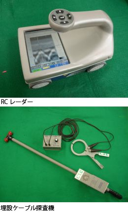 赤外線サーモグラフィにより、建物の温度分布を画像処理し、壁面のひび割れ、浮きの調査を行います。RCレーダー(電磁波)、X線装置により鉄筋の位置、深さを調査する他、埋設ケーブル探査機(電磁誘導法)により地中、コンクリート壁内のケーブル位置を調査致します。 コンクリート構造物の配筋探査技術者に関しては2008年度より技術資格者の機関認証制度が制定されています。